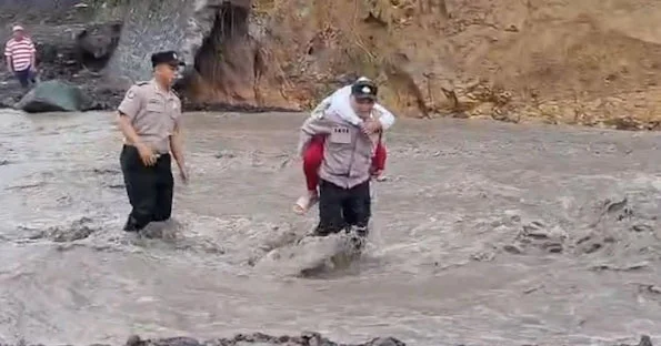 Aksi Heroik Polisi di Lumajang Gendong Siswa SD Seberangi Lahar Dingin Semeru